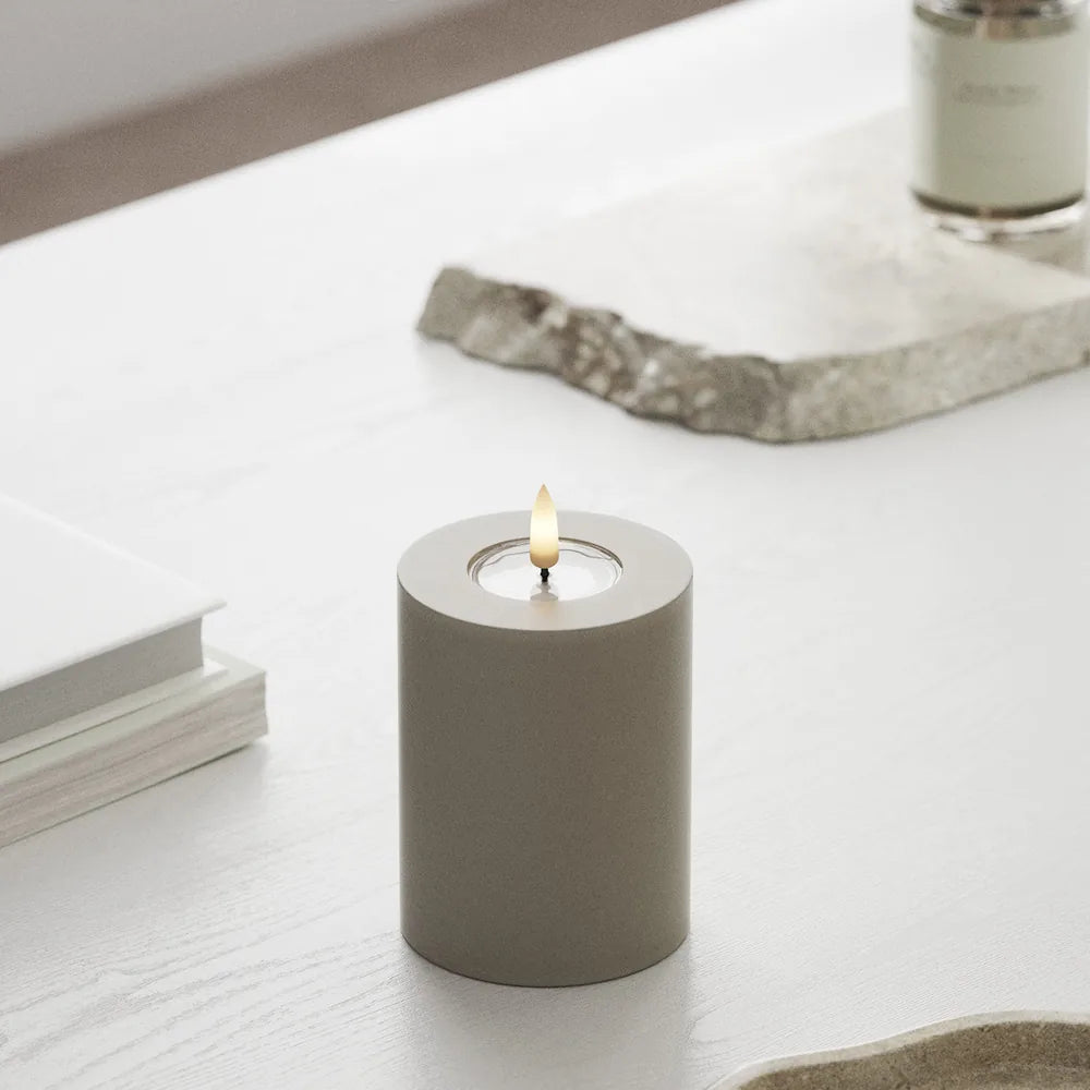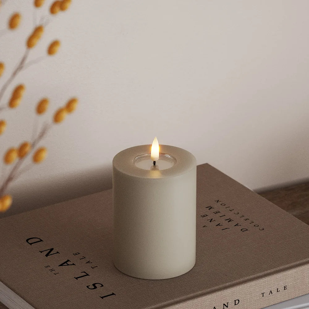 Mit ihrer sanften sandfarbenen Oberfläche und der lebensechten 3D‑Flamme zaubert diese LED‑Kerze sofort Gemütlichkeit in dein Zuhause. Das Duo aus echtem Wachs und Harz sorgt für einen realistischen “Wet‑Look”, während der flackernde Docht wie eine echte Flamme wirkt – nur ohne Ruß und Brandgefahr. Perfekt für skandinavisch inspirierte Wohnräume, sorgt sie mit bis zu 400 Stunden Laufzeit für lange, entspannte Abende.