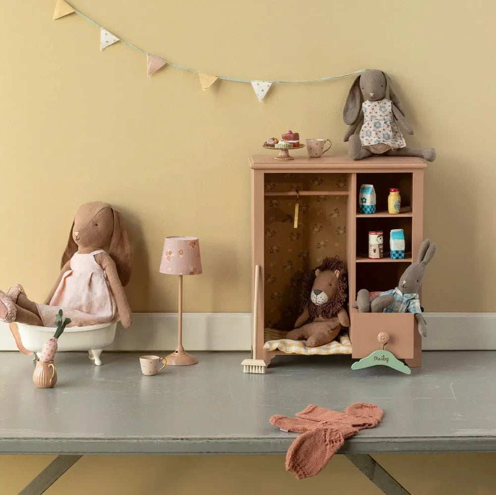 Bringe skandinavischen Zauber in die Stube deiner kleinen Lieblinge! Diese bezaubernde Maileg Stehlampe in Dark Powder besticht durch ihren nostalgischen Charme und sorgt mit sanftem Lichtschein für echtes Hygge-Gefühl im Puppenhaus.