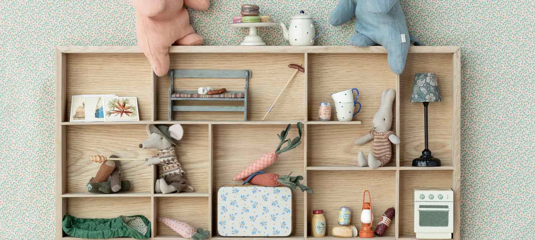 Maileg Zubehör verbindet natürliche Ästhetik mit fantasievollem Spielen. Entdecke Holzmöbel und Accessoires, die Deine Spielwelt mit skandinavischem Design und zeitlosen Farben bereichern.