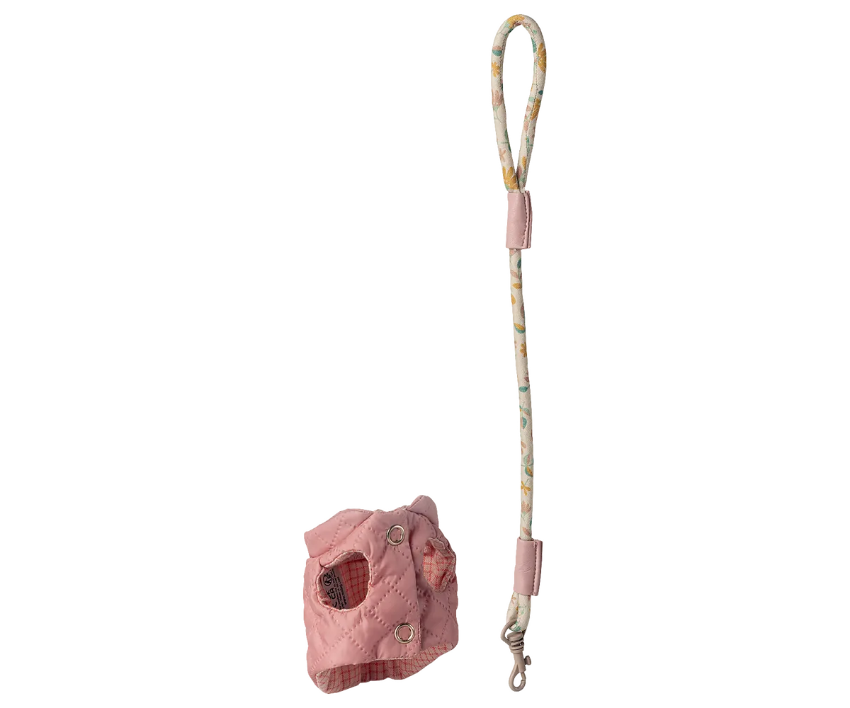 Maileg - Haustierzubehör Geschirr und Leine Rose