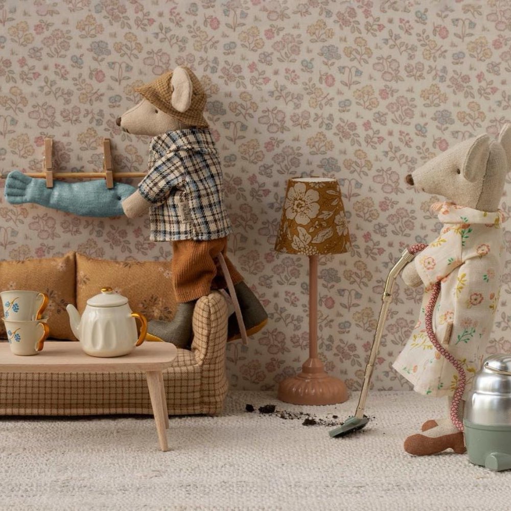 Häng die Kleidung an einen kleinen Bügel oder über eine Stuhllehne im Mäusehaus – das wirkt sehr lebendig.