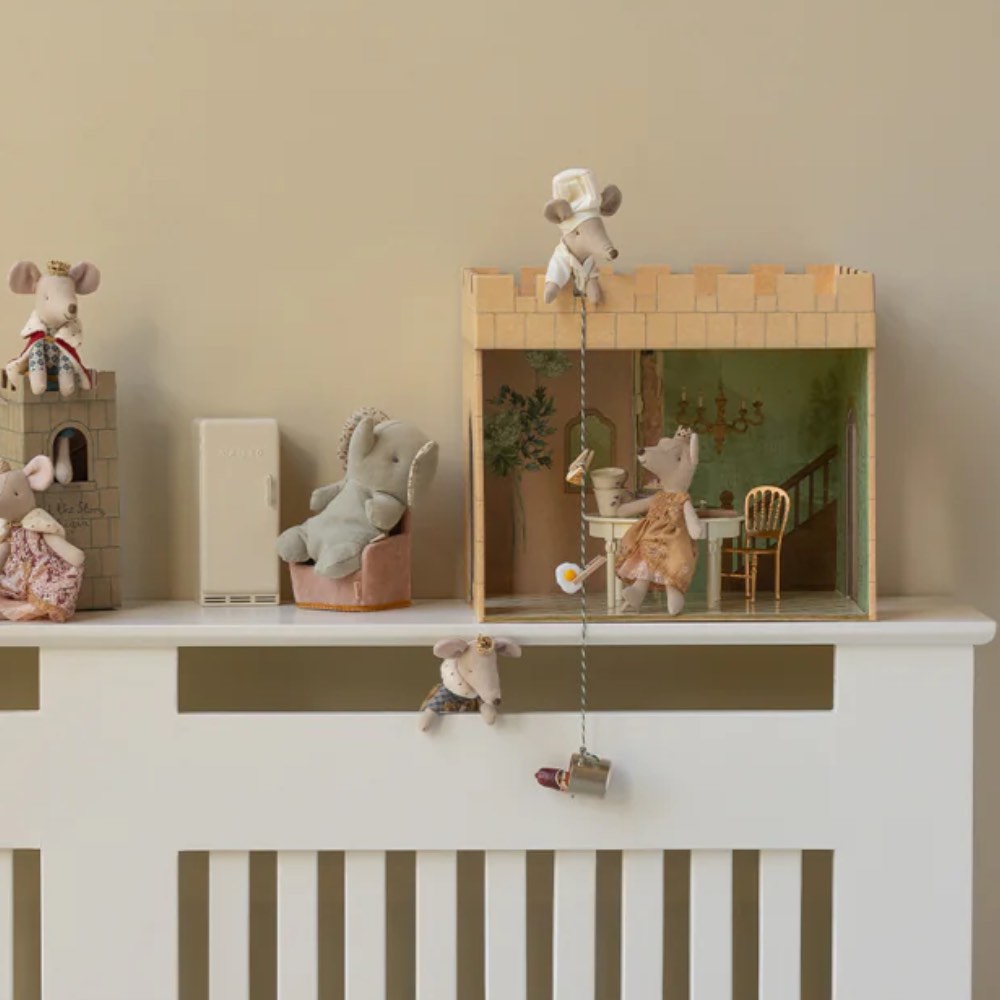 Platziere die Prinzessin in der Nähe einer kleinen Teekanne – so wirkt es, als würde sie gerade Hof halten.