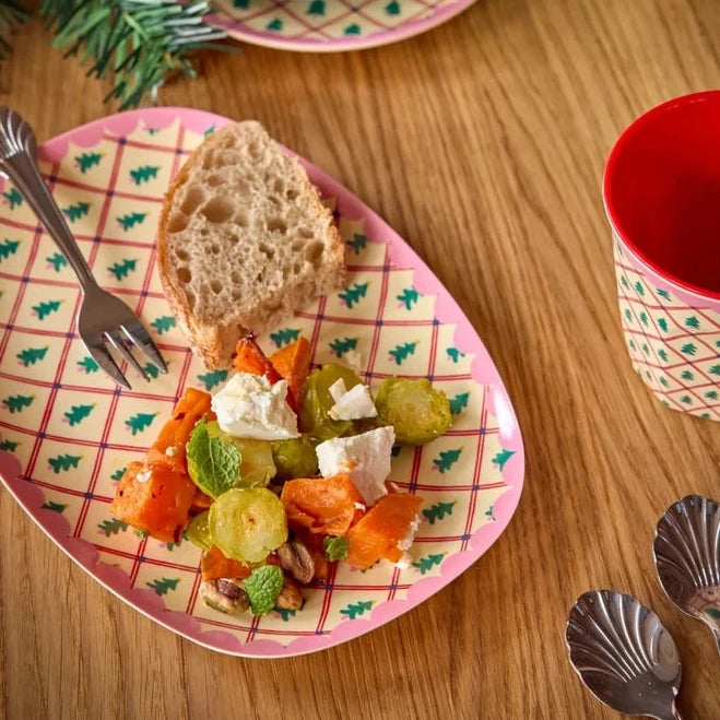 Kombiniere diesen Teller mit anderen Teilen aus der Rice Weihnachtskollektion – besonders schön zu pastellfarbenen Tischdecken oder Holzaccessoires. Ein paar Tannenzweige und Lichterketten dazu, und dein Tisch erzählt seine ganz eigene Wintergeschichte!