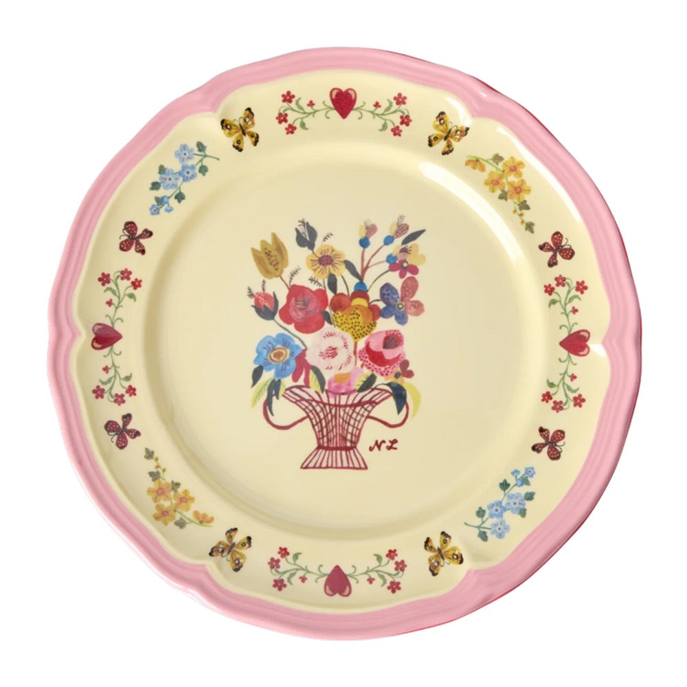 Bringe nostalgischen Charme und pure Lebensfreude auf deinen Tisch mit diesem zauberhaften Vintage Beilagenteller von Rice. Das verträumte Design der Künstlerin Nathalie Lété in leuchtendem Pink macht jedes Frühstück und jedes Stück Kuchen zu einem kleinen Fest der Sinne ♥.