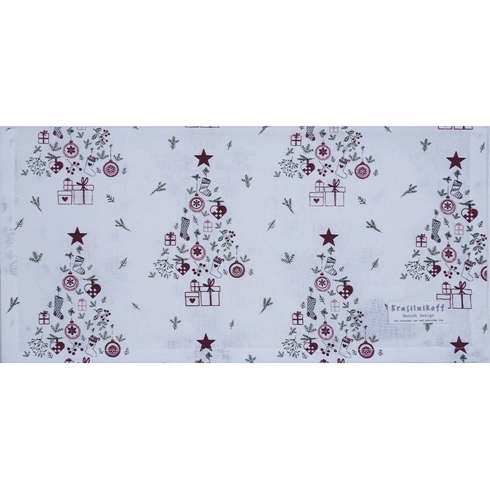 Die Serviette Christmas Tree allover spielt mit dem klassischen Tannenbaummotiv auf charmante Weise: kleine Bäume werden aus winzigen Geschenkpäckchen, Christbaumkugeln, Herzen und Zweigen zusammengesetzt. Auf dem hellen Hintergrund kommen die burgunderroten, grünen und goldenen Details besonders schön zur Geltung und bringen sofort Weihnachtsstimmung auf den Tisch.