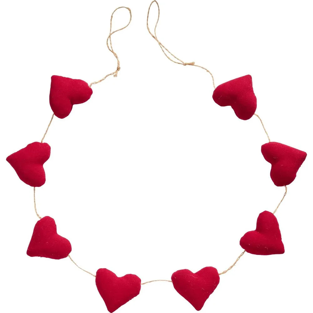 Dieses Nostalgie-Band mit acht weichen Herzen bringt sofort Weihnachtsstimmung in dein Zuhause. Die leuchtend roten Herzen auf der naturfarbenen Schnur wirken verspielt und liebevoll – perfekt, um mit deinen Kindern zu dekorieren.