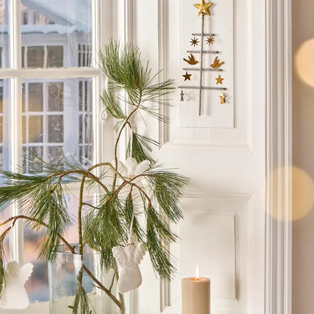 Platziere die Kerze auf einem Holz- oder Metallteller und kombiniere sie mit Zapfen, Zweigen und kleinen Holzfiguren. Das Wort „Hygge“ lädt dazu ein, in Ruhe eine Tasse Kakao zu genießen und gemeinsame Momente zu feiern.