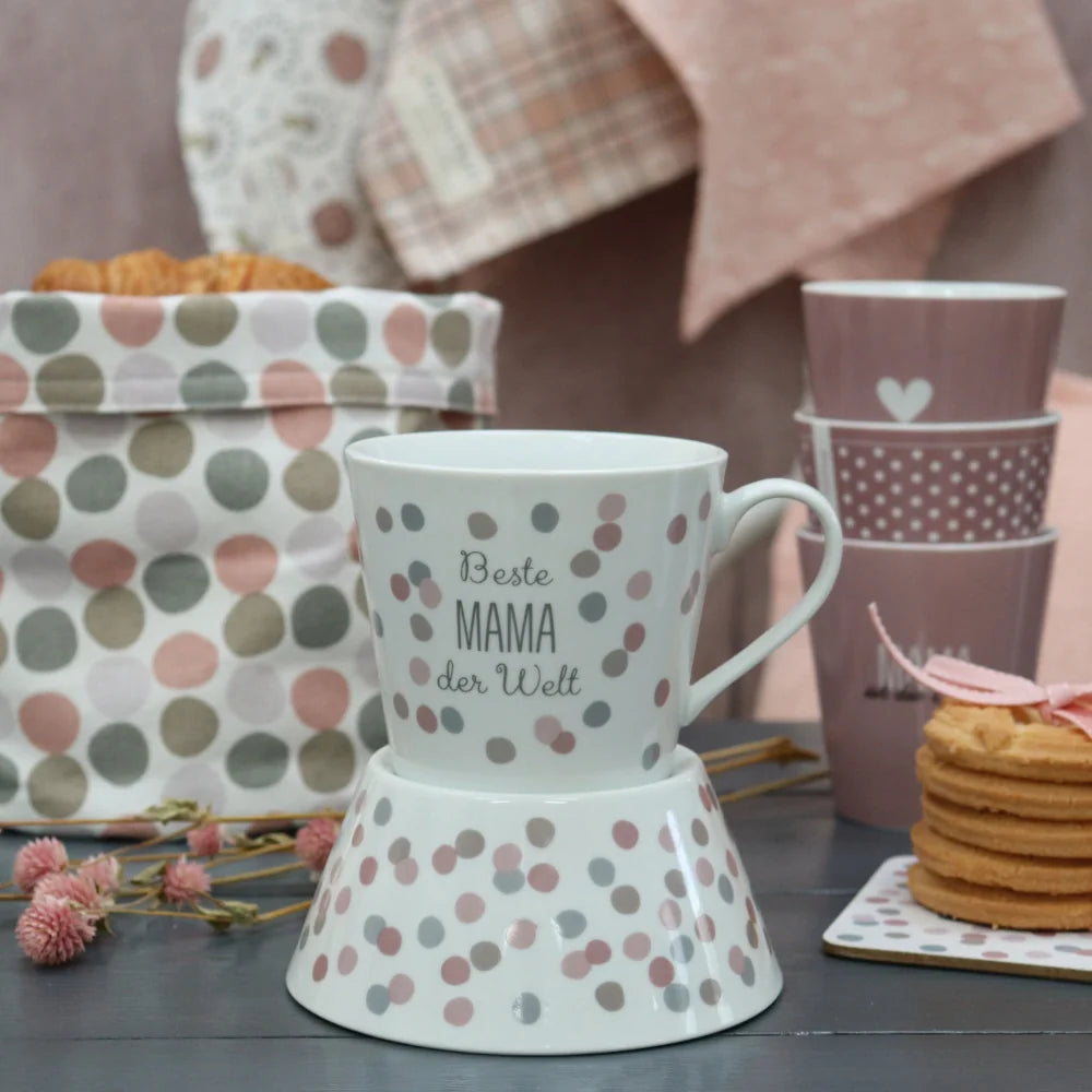 Mit sanften Pastellpunkten und der liebevollen Botschaft „Beste MAMA der Welt“ schenkt dieser Becher jeden Morgen ein Lächeln. So beginnt der Tag deiner Mama mit einem warmen Gefühl.