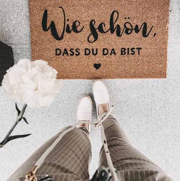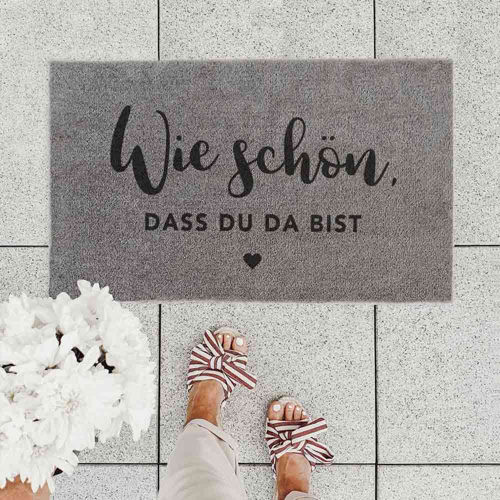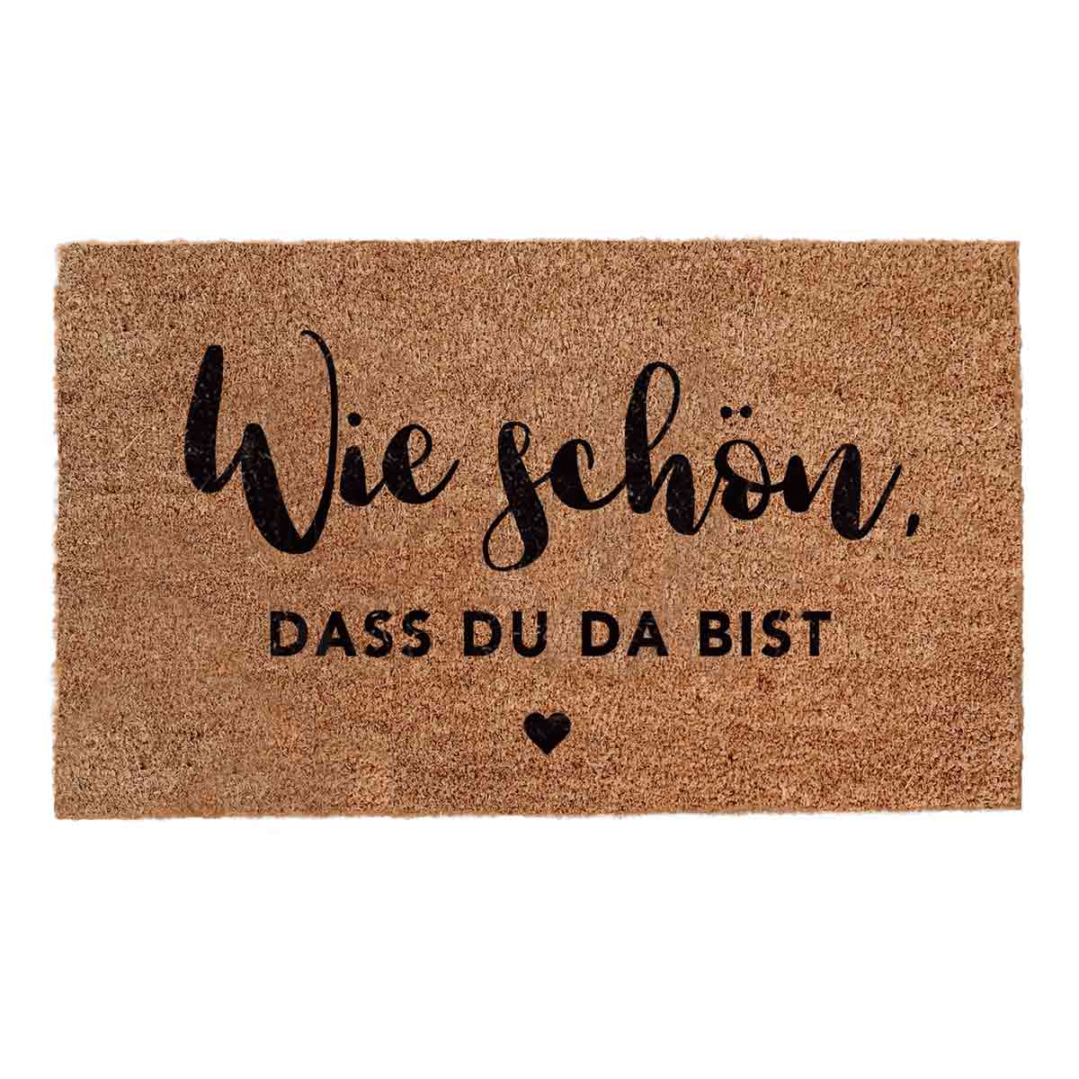 Du willst deine Gäste herzlich willkommen heißen und gleichzeitig ein Stück Natur vor deine Haustür bringen? Die Kokos-Fußmatte von Eulenschnitt macht genau das möglich. Ihr liebevolles Motto „Wie schön, dass du da bist“ ist nicht nur eine Begrüßung, sondern ein echtes Statement. Gefertigt aus robusten Kokosfasern vermittelt sie einen natürlichen Look, der durch die warmen Brauntöne und die kontraststarke schwarze Schrift wunderschön zur Geltung kommt. Die dichte Oberfläche reinigt Schuhe effektiv, während die warme Botschaft ein Lächeln auf die Lippen zaubert.