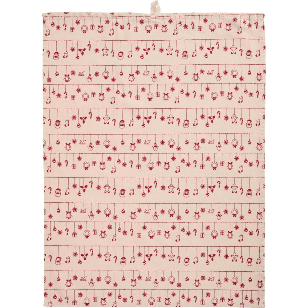 Hollie bringt mit ihren aufgedruckten roten Weihnachtsanhängern an Schnüren eine festliche Stimmung in deine Küche. Das Tuch ist saugstark und dekorativ zugleich.