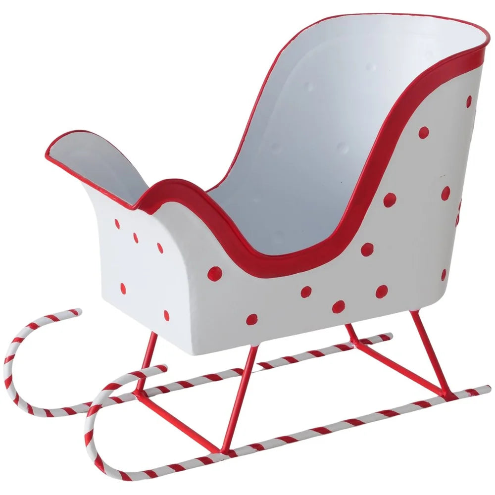 Stell dir vor, wie dieser verspielte Schlitten auf deinem Sideboard steht: funkelnde Winterfreude in schneeweißem Metall, garniert mit liebevoll aufgemalten roten Punkten. Er wirkt wie aus einem Weihnachtsfilm entsprungen und zaubert im Nu festliche Stimmung in dein Zuhause. Sein nostalgisches Design bringt Erinnerungen an verschneite Landschaften – perfekt, um deine Gäste zum Träumen zu bringen.