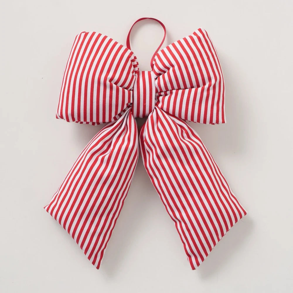 Die große, handgefertigte Schleife besteht aus einem hochwertigen Stoffmix aus Baumwolle und Polyester. Ihr zeitloses Streifenmuster und die kräftigen Farben machen sie zu einem klassischen und zugleich verspielten Dekoaccessoire. Mit ihrer liebevollen Verarbeitung und dem festlichen Flair ist sie ein Must-have für jede weihnachtliche Dekoration.