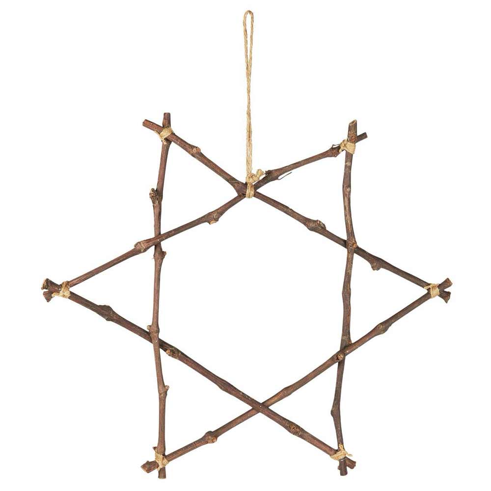 Der Stern besteht aus natürlichen Zweigen, die mit einer Juteschnur verbunden sind. Dieses Design kombiniert gekonnt einen natürlichen Look mit einem Hauch von handgemachter Eleganz. Perfekt, um deine Winter- und Weihnachtsdekoration zu vervollständigen und eine rustikale Atmosphäre zu schaffen.