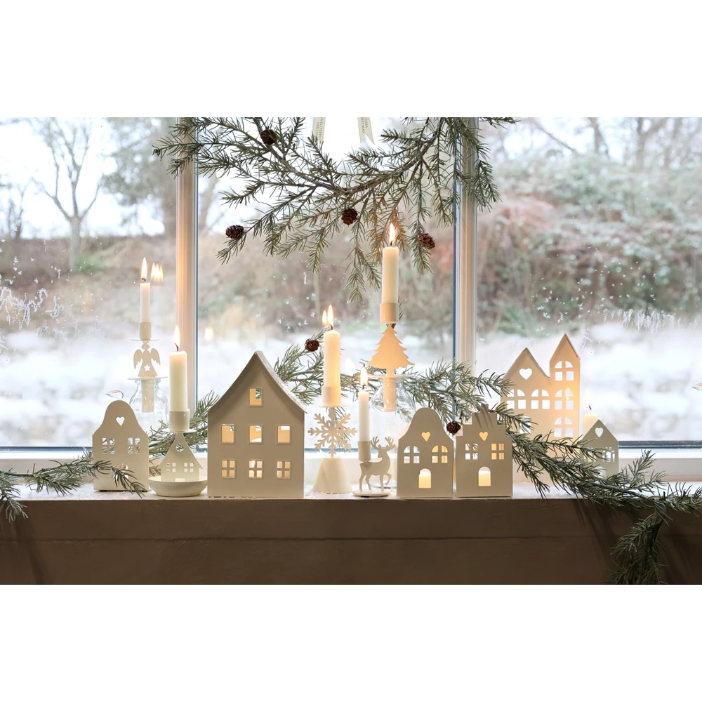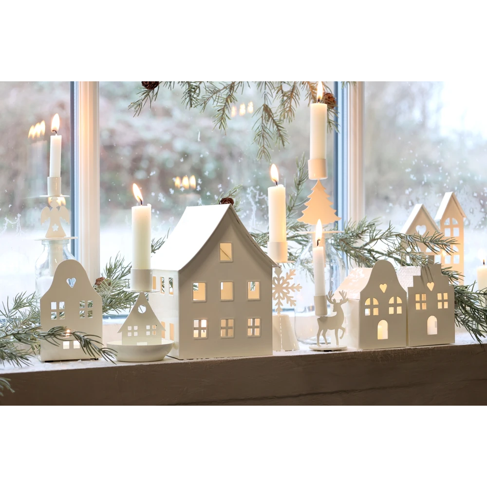 Platziere die Kerzenhäuser auf einem dekorativen Tablett mit Tannenzweigen und Zimtstangen oder kombiniere sie mit weiteren Häusern und Lichterketten, um eine ganze Dorflandschaft zu gestalten. Sie wirken besonders zauberhaft auf der Fensterbank oder als Mittelpunkt deines Adventskranzes.