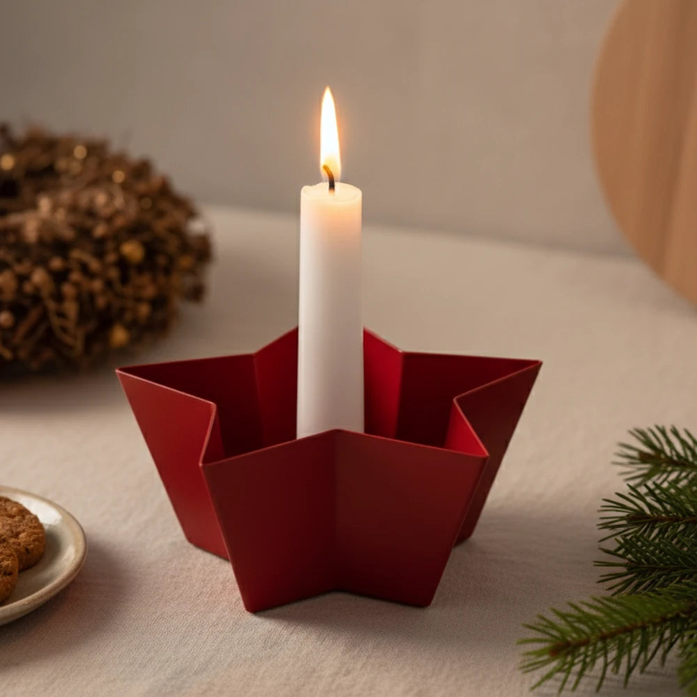 Dieser sternförmige Kerzenhalter bringt sofort weihnachtliche Wärme in Dein Zuhause. Mit seiner klaren, modernen Form und dem festlichen Rot wird er zum Highlight auf jedem Tisch. Perfekt, um die Adventszeit gemeinsam mit der Familie stimmungsvoll zu genießen.