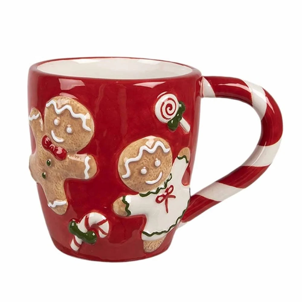 Clayre & Eef - Rote Lebkuchen-Tasse mit Zuckerstangenhenkel