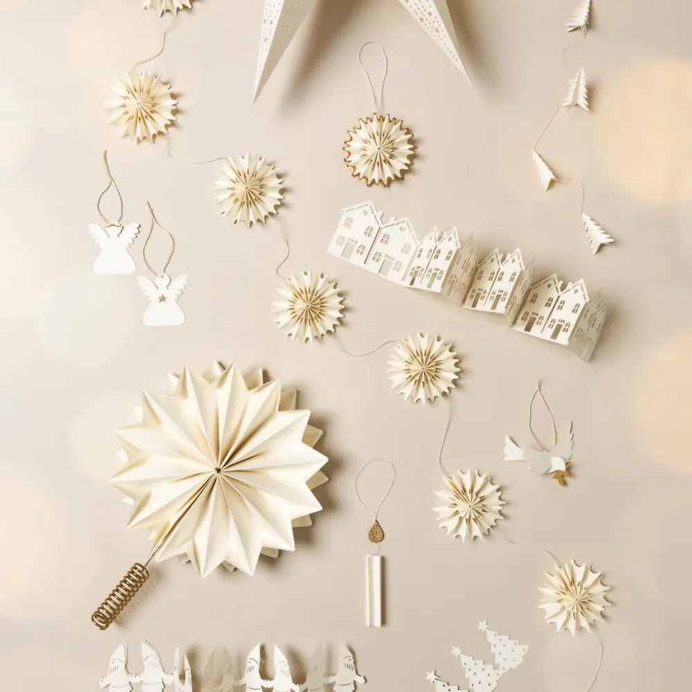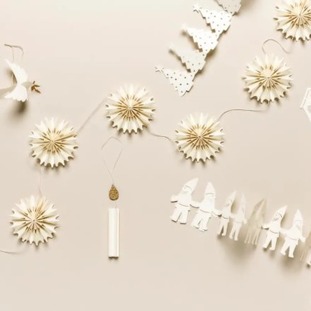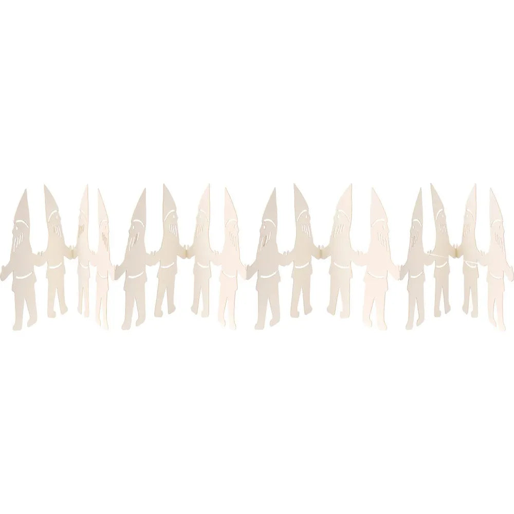 Mit dieser zarten Weihnachtstischdekoration holst du die Wichtel direkt auf deinen festlich gedeckten Tisch. Eine Kette aus ausgeschnittenen Papier-Wichteln steht Händchen haltend nebeneinander und verleiht deinem Zuhause einen verspielten, nordischen Touch.