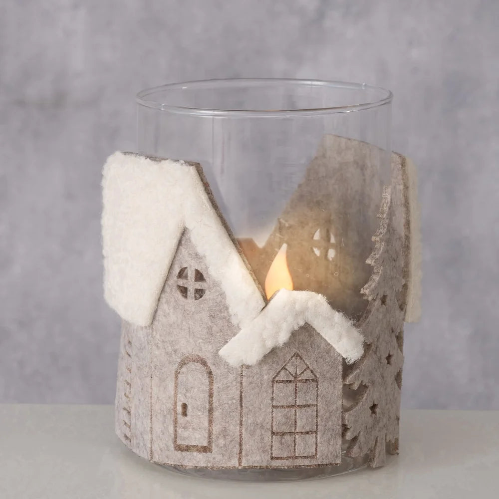 Boltze - Windlicht mit Hauslandschaft aus Filz