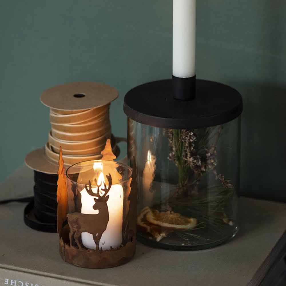 Für eine gemütliche Atmosphäre sorgen rustikale Windlichter, die oft aus natürlichen Materialien wie Holz oder mit Moos- und Naturmotiven gestaltet sind. Vintage-Designs mit Patina oder in Used-Optik verleihen Räumen einen charmanten und behaglichen Charakter.