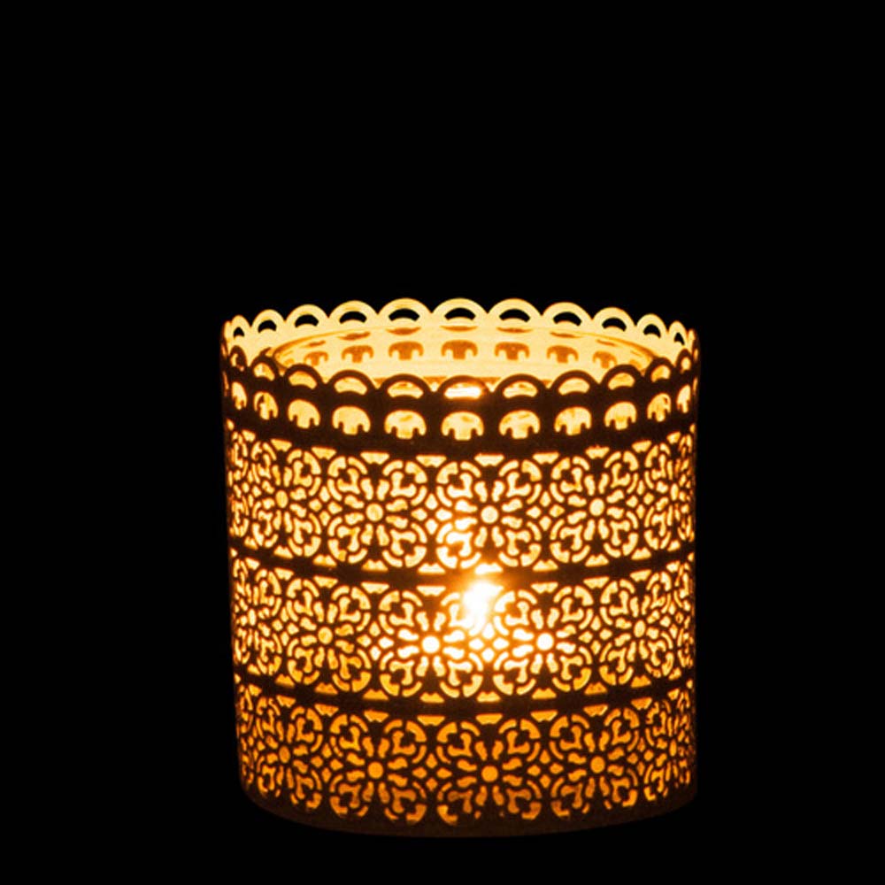Metall: Metallische Windlichter bieten eine hohe Wetterfestigkeit, was sie zu einer guten Wahl für den Außenbereich macht. Sie können kunstvolle Muster aufweisen, die das Licht effektvoll brechen.