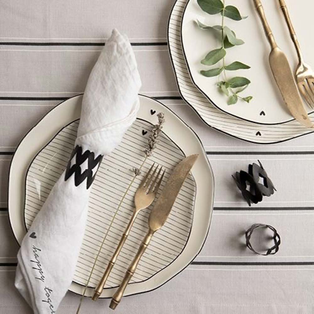 Platziere den Serviettenring mit einer hellen Stoffserviette auf einem Teller mit Herzdetails – vielleicht sogar aus der gleichen Serie von Bastion Collections. Dazu ein paar Zweige oder Eukalyptusblätter und schon wird aus Deinem Tisch ein Hingucker für Gäste oder Deine Familie.