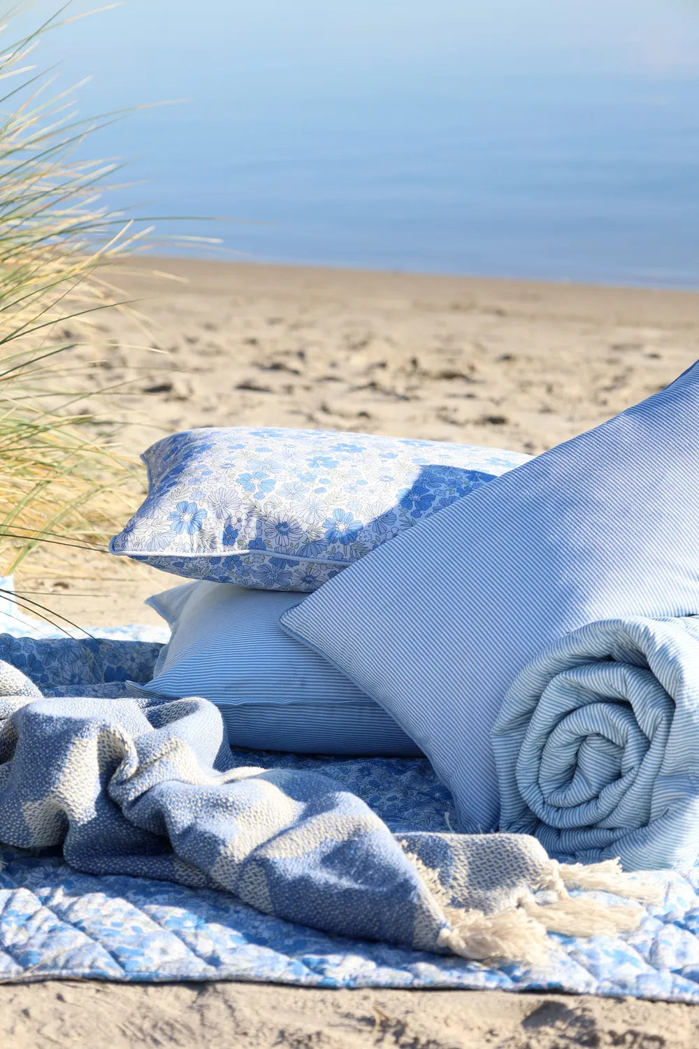 Hol dir das entspannte Urlaubsgefühl direkt auf dein Sofa! Die Kissenhülle „Aix“ von Chic Antique verzaubert mit ihrem klassischen Streifenmuster in himmlischem Sky Blue und Weiß und sorgt sofort für eine frische Brise in deinem Zuhause. Egal ob im Wohnzimmer oder auf der Gartenbank, dieses Accessoire bringt nordische Leichtigkeit und gemütlichen Charme in jeden Winkel ♥.
