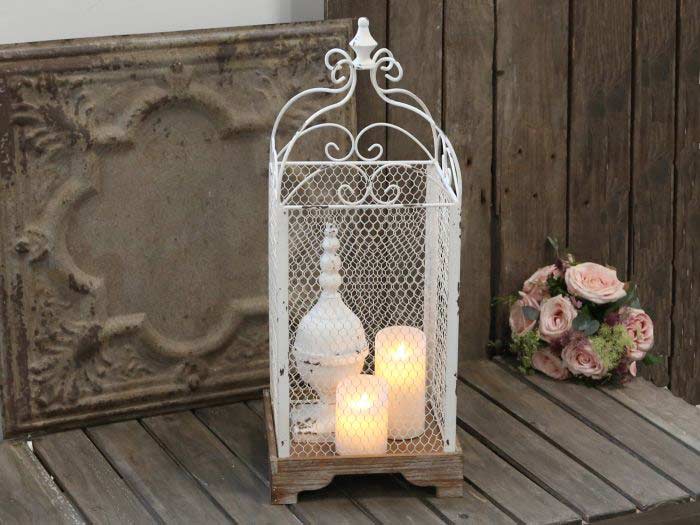 Die Laterne fil de fer von Chic Antique ist ein Klassiker aus der Serie der dänischen Firma und ein absoluter Muss für jeden Shabby-Chic-Fan. Die aufwendige Verarbeitung und Liebe zum Detail zeigt sich ganz deutlich an dieser wunderschönen Laterne, die durch die vielen Verzierungen und ihren traumhaften Sockel garantiert zu Deinem Lieblingsstück in Deiner Wohnung wird. Bestückt mit schönen Kerzen und einem Vintage-Blumenstrauß ein Traum für jeden Chic Antique-Fan. Setze mit dieser besonderen Laterne zauberhafte Lichtakzente in Deinem Wohnzimmer, Terrasse oder Wintergarten. Gemütlichkeit inklusive.