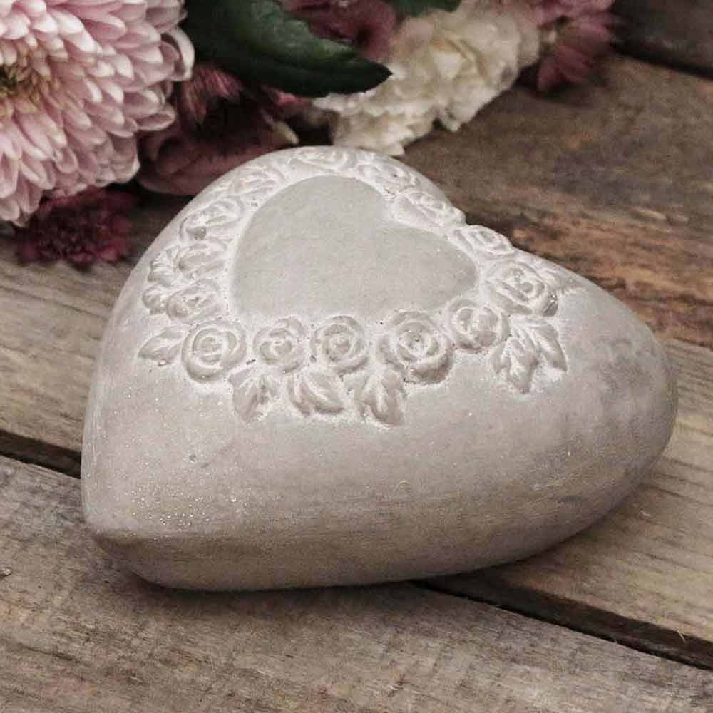 Gefertigt aus robustem Kunststein besticht das Herz durch sein authentisches Gewicht und seine matte Oberfläche. Die filigranen Rosen, die sich rund um die Herzvertiefung winden, sind detailreich herausgearbeitet und verleihen dem Stück einen nostalgischen Charakter. Mit einer Größe von etwa 12 × 12 cm liegt es angenehm in der Hand und kann als Briefbeschwerer, Grabbeigabe oder dekoratives Highlight genutzt werden. Das unaufdringliche Grau harmoniert mit modernen wie auch rustikalen Stilrichtungen.