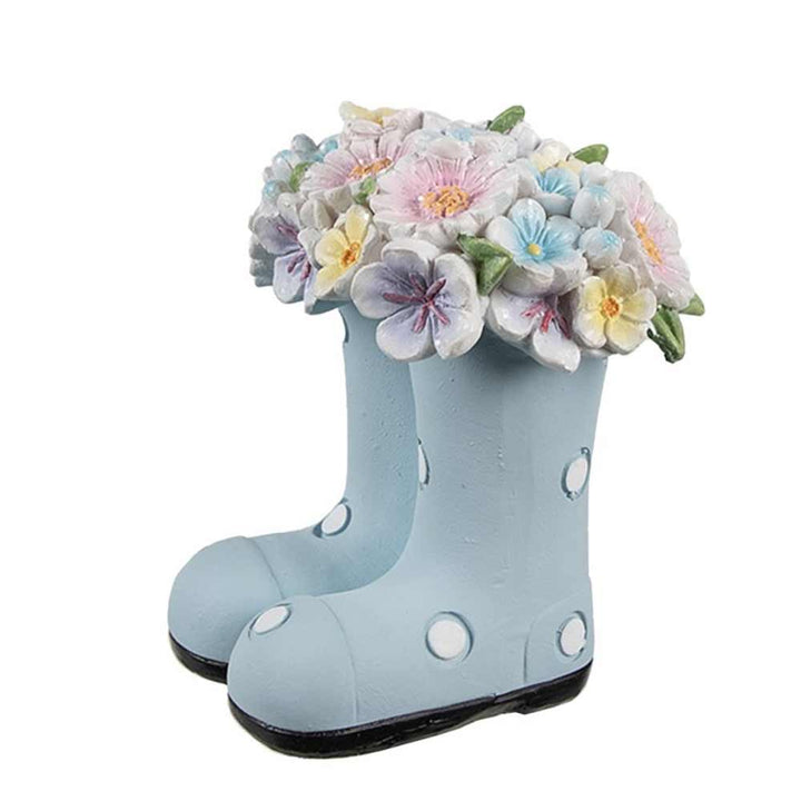 Die Kombination aus romantischem Blumenarrangement und frechem Gummistiefel-Look sorgt für eine einmalige Mischung aus Nostalgie und Lebensfreude. Die Rosen, Narzissen und feinen Blüten sind detailverliebt gestaltet, teils mit zartem Glitzer veredelt – fast wie frisch gepflückt! Ob als Geschenk oder für die eigene Fensterbank: Dieses Stück erzählt Geschichten vom Frühling.