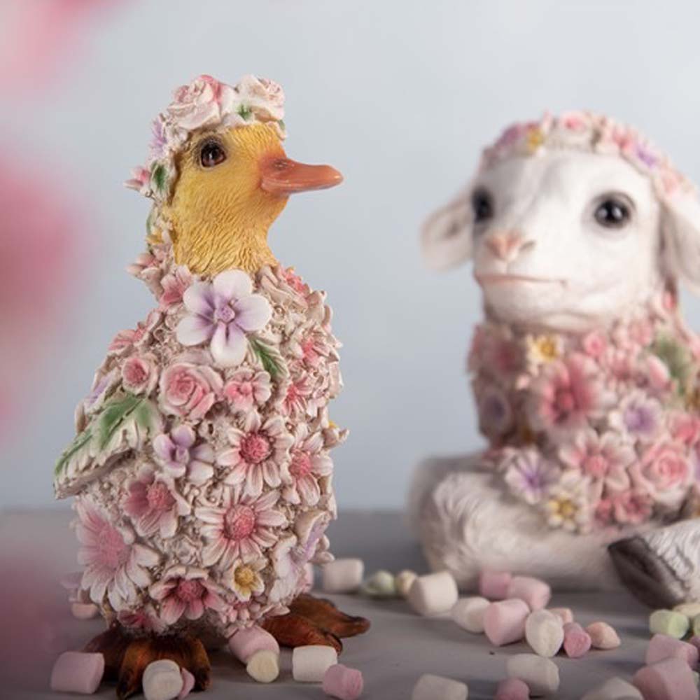 Die Kombination aus realistischer Gestaltung und fantasievollem Blumenschmuck macht dieses Lamm zu etwas ganz Besonderem. Sein fein modelliertes Fell und die liebevoll arrangierten Blumen in Pastelltönen wie Rosa, Lila und Gelb machen es zum romantischen Hingucker. Dank hochwertigem Polyresin ist es stabil und langlebig – perfekt für viele Frühlings- und Osterfeste!