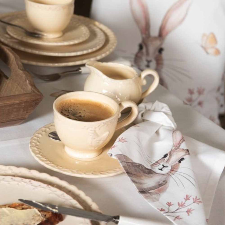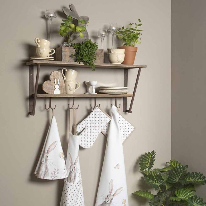 Dieses liebevoll gestaltete Geschirrtuch von Clayre & Eef bringt sofort Frühlingsgefühle in Deine Küche! Mit seinem niedlichen Hasenmotiv und den zarten Blüten strahlt es pure Gemütlichkeit aus – perfekt für die Osterzeit und alle, die verspielte Akzente lieben.