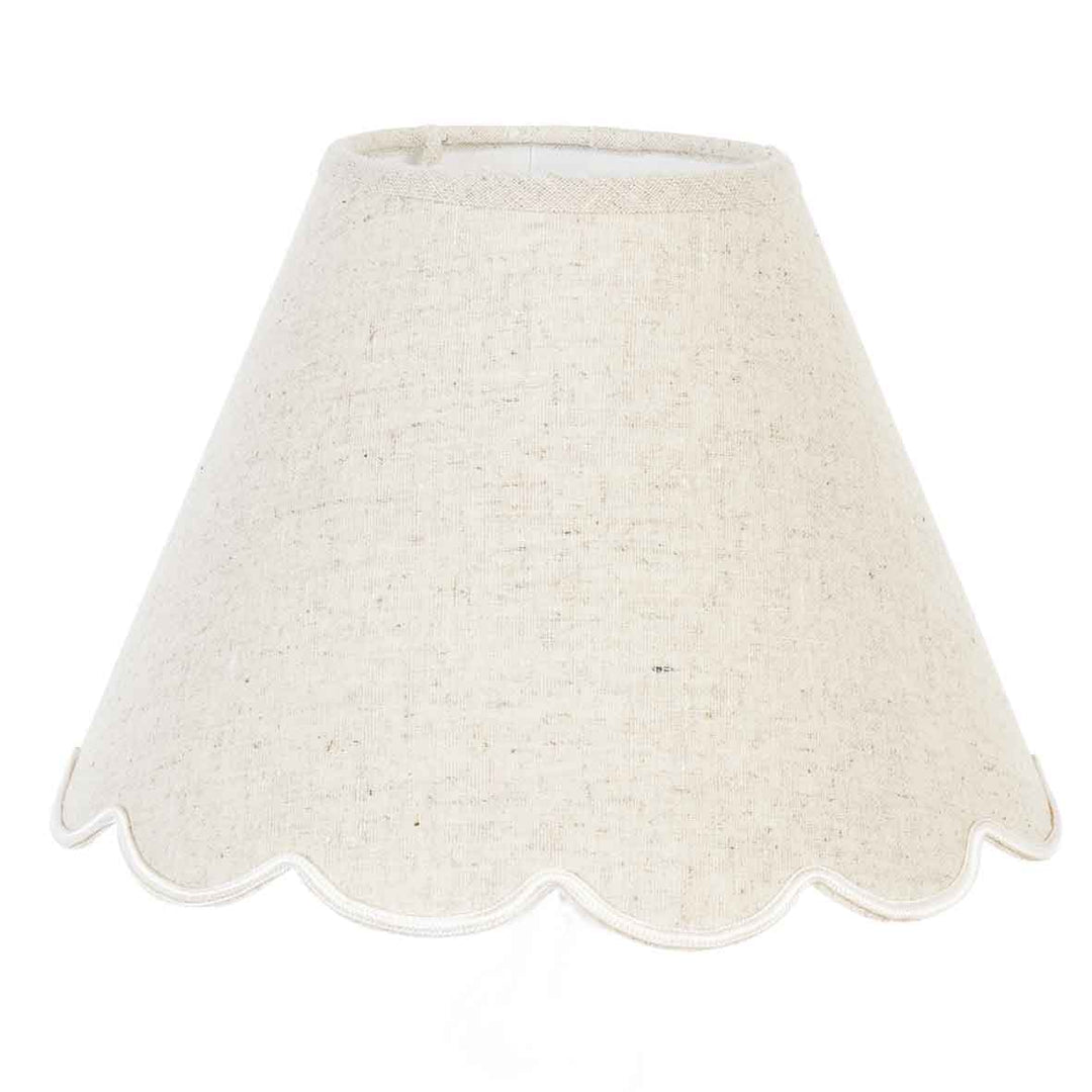Dieser zarte Lampenschirm verleiht jedem Raum eine sanfte, nostalgische Note. Sein leichter Volantabschluss erinnert an die wellenförmige Kante eines Vintage‑Kleides und sorgt für eine romantische, verspielte Silhouette. Die natürliche, beigefarbene Stoffstruktur lässt das Licht besonders warm und gemütlich erscheinen und schafft damit eine beruhigende Atmosphäre. Ideal, um einer schlichten Tischlampe neues Leben einzuhauchen oder im Schlafzimmer für ein sanft gedämpftes Licht zu sorgen.