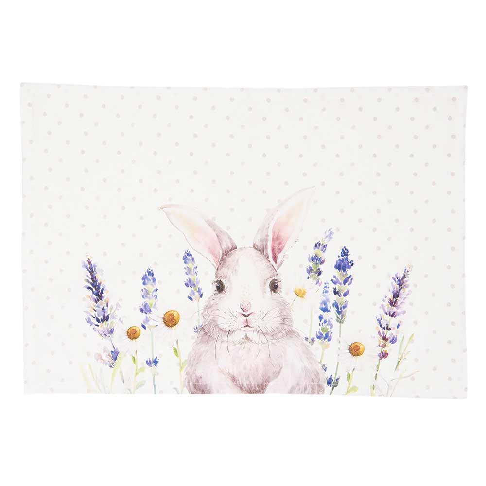 Wenn du deinen Frühstückstisch im Frühling mit einem Lächeln decken möchtest, ist dieses Platzset mit Hasenmotiv genau das Richtige. Ein liebenswerter Hase blickt dir aus einem Meer von Lavendelblüten und kleinen Gänseblümchen entgegen – wie ein Aquarellgemälde, das sofort gute Laune verbreitet. ♥ Das zarte Pünktchen‑Muster im Hintergrund unterstreicht den romantischen Charakter und macht jede Mahlzeit zu einem kleinen Fest.