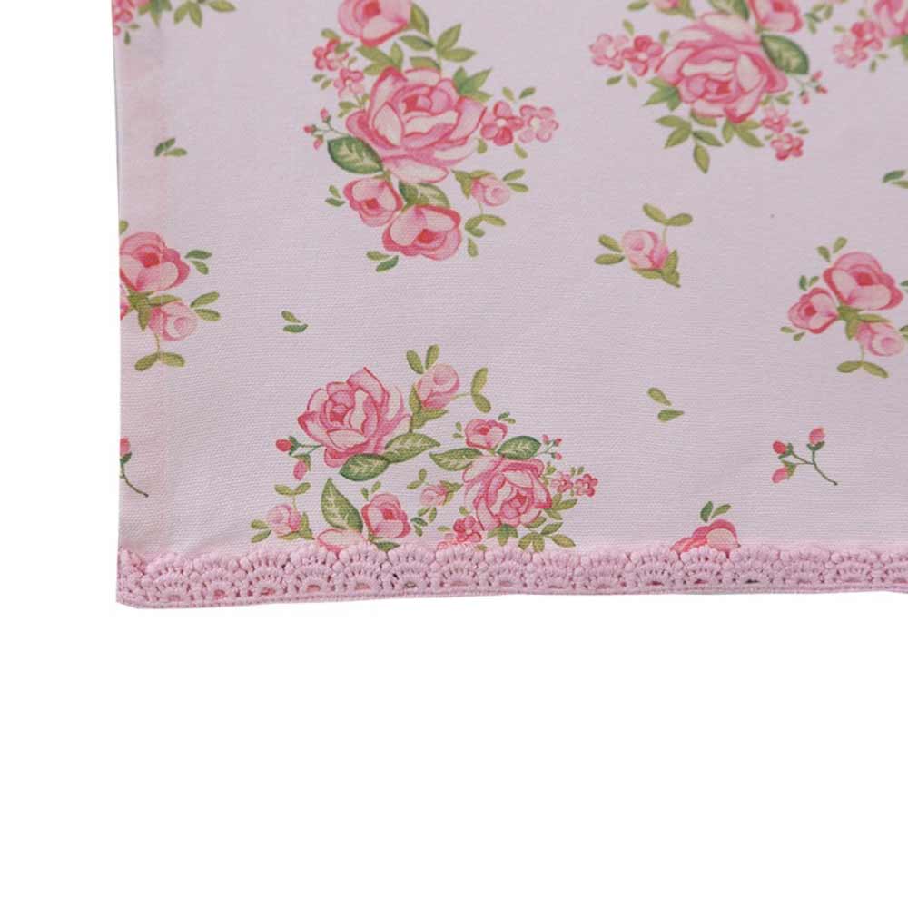Das selbst entworfene Muster mit verspielten Blumen in Rosa und Pink harmoniert wunderbar mit der feinen Spitzenbordüre an den Enden. Der Tischläufer ist aus 100 % Baumwolle gefertigt und fühlt sich angenehm weich und hochwertig an. Besonders charmant: Du kannst ihn perfekt mit den passenden Accessoires aus der gleichen Serie kombinieren – vom Brotkorb bis zum Küchentuch!