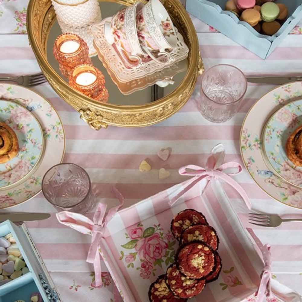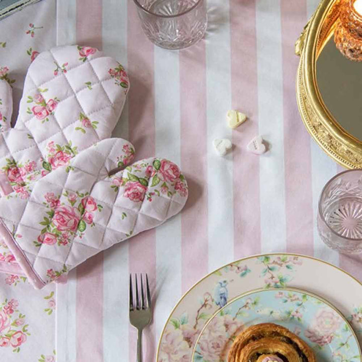 • Liebevoll gestaltetes Design: Zwei Varianten mit klassischem Rosenmotiv – einmal auf hellrosa Grund, einmal mit rosa-weißen Streifen