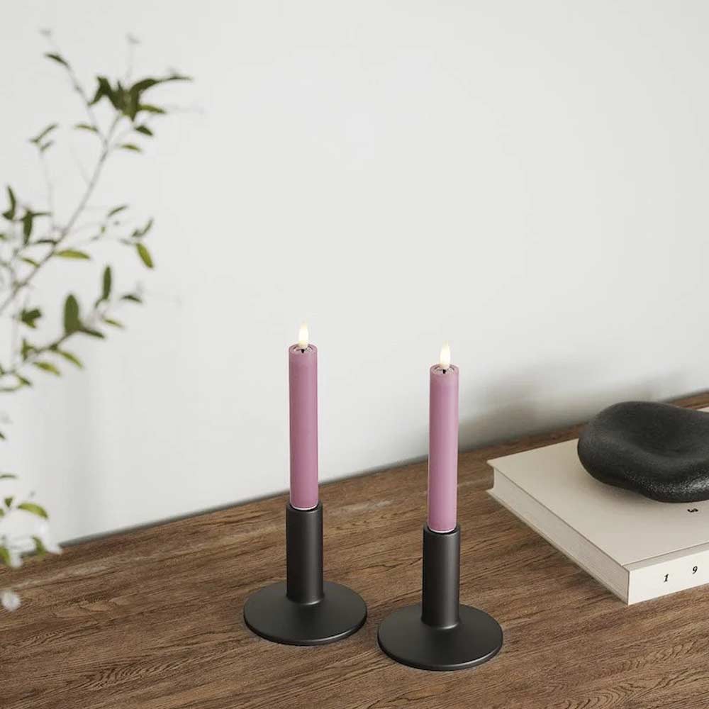 Die Kombination aus echtem Stearin, hochwertigem Harzfinish und moderner LED-Technologie sorgt für einen authentischen Flammeffekt. Das einzigartige „nasse Aussehen“ im zarten Fliederton lässt jede Dekoration lebendig wirken.