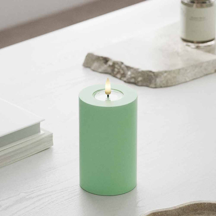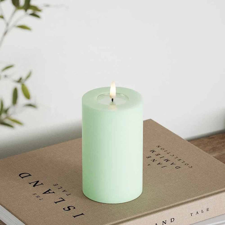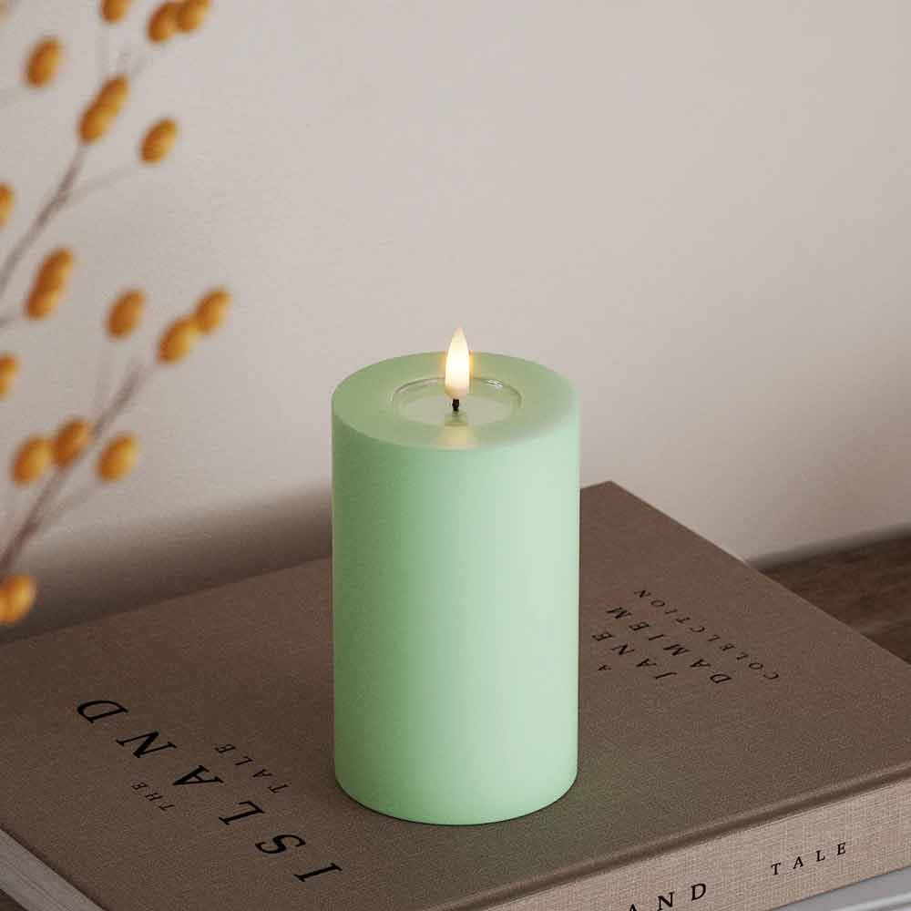 Die Deluxe Homeart LED Stumpenkerze in Mint (7,5x12,5 cm) ist nicht nur ein stilvolles Deko-Objekt, sondern auch ein sicherer und langlebiger Lichtspender. Die Kombination aus echtem Stearin, innovativer 3D-Flamme und einem Finish, das wie geschmolzenes Wachs wirkt, macht sie kaum von einer echten Kerze zu unterscheiden. Praktisch: Mit der Timerfunktion kannst du das Licht automatisch steuern – für noch mehr Komfort und Energieeffizienz.