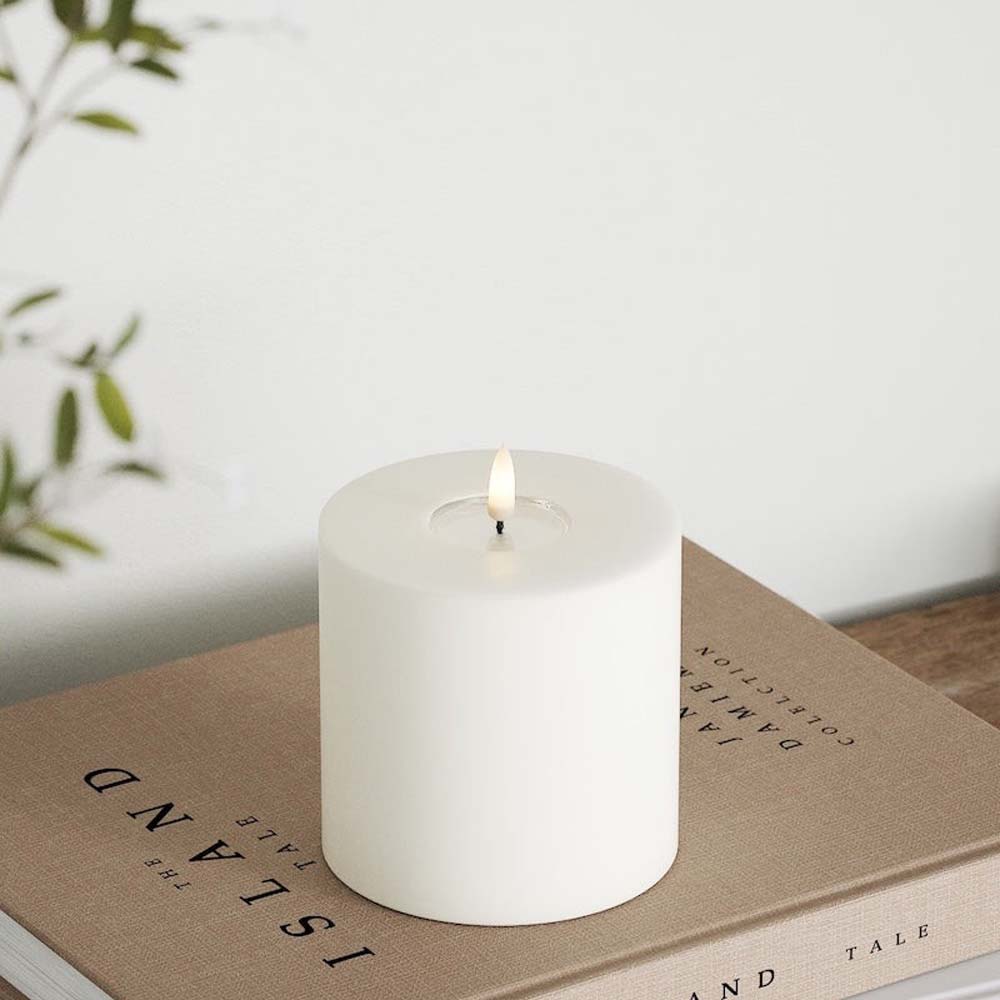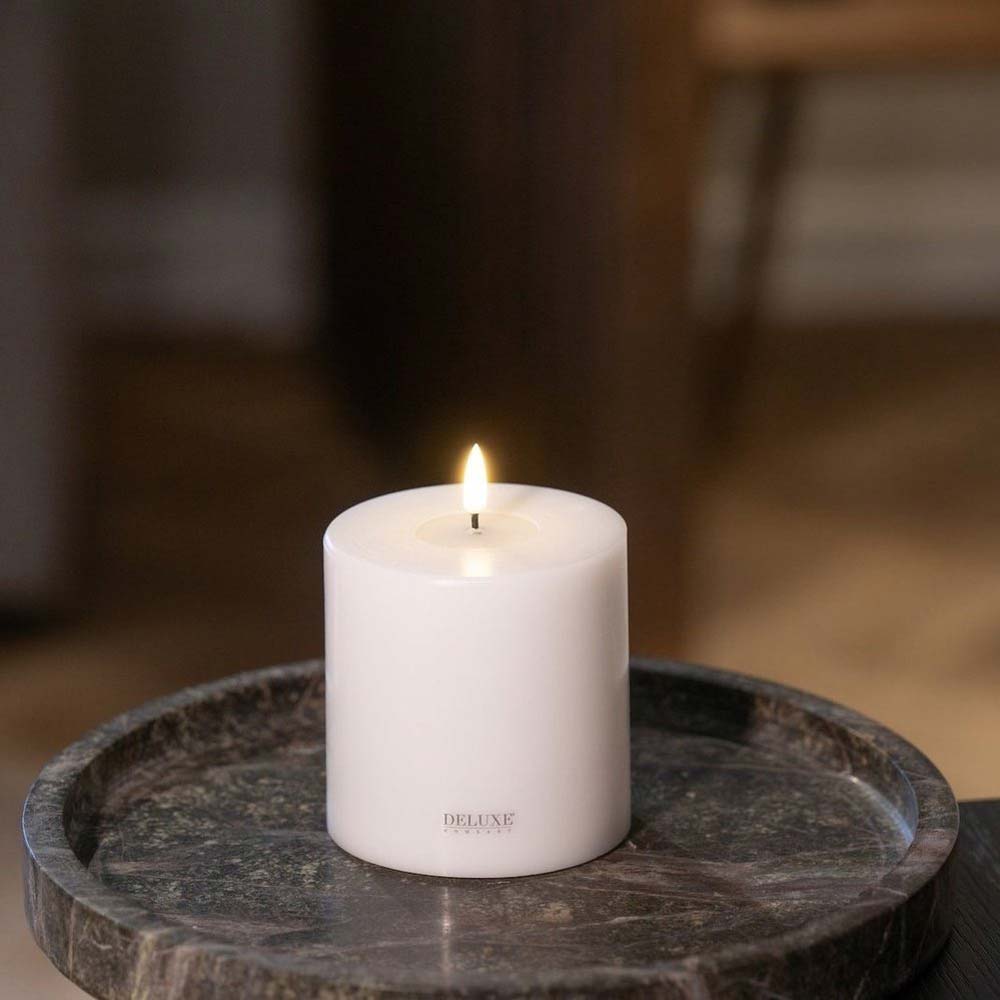 Mit der Deluxe Homeart LED-Stumpenkerze in Weiß (10x10 cm) zauberst Du stimmungsvolle Lichtmomente in Dein Zuhause – ganz ohne offenes Feuer! Dank der täuschend echten 3D-Flamme flackert das Licht wie bei einer echten Kerze. Der elegante Look in reinweißem Stearin-Wachs passt in jeden Raum und macht diese LED-Kerze zum stilvollen Hingucker – ob beim Familienessen, gemütlichen Abend auf dem Sofa oder beim Einschlafritual im Kinderzimmer.