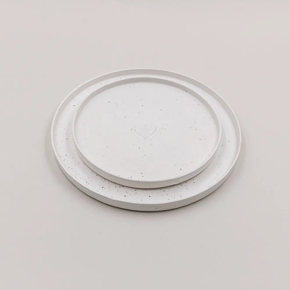 Hol dir die pure nordische Leichtigkeit auf deinen Tisch! Dieser bezaubernde Frühstücksteller aus der beliebten Serie "Calma" überzeugt durch sein minimalistisches Design, die sanften Sprenkel und das kleine, erhabene Herz in der Mitte, das dir jeden Morgen ein Lächeln ins Gesicht zaubert.