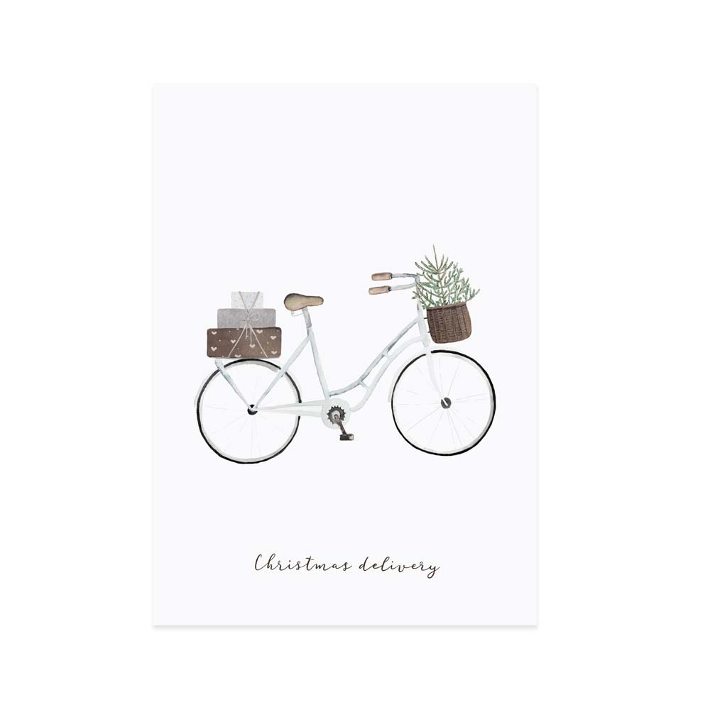 | Motiv | Fahrrad mit Geschenken und Sukkulente, Schriftzug „Christmas delivery“ |