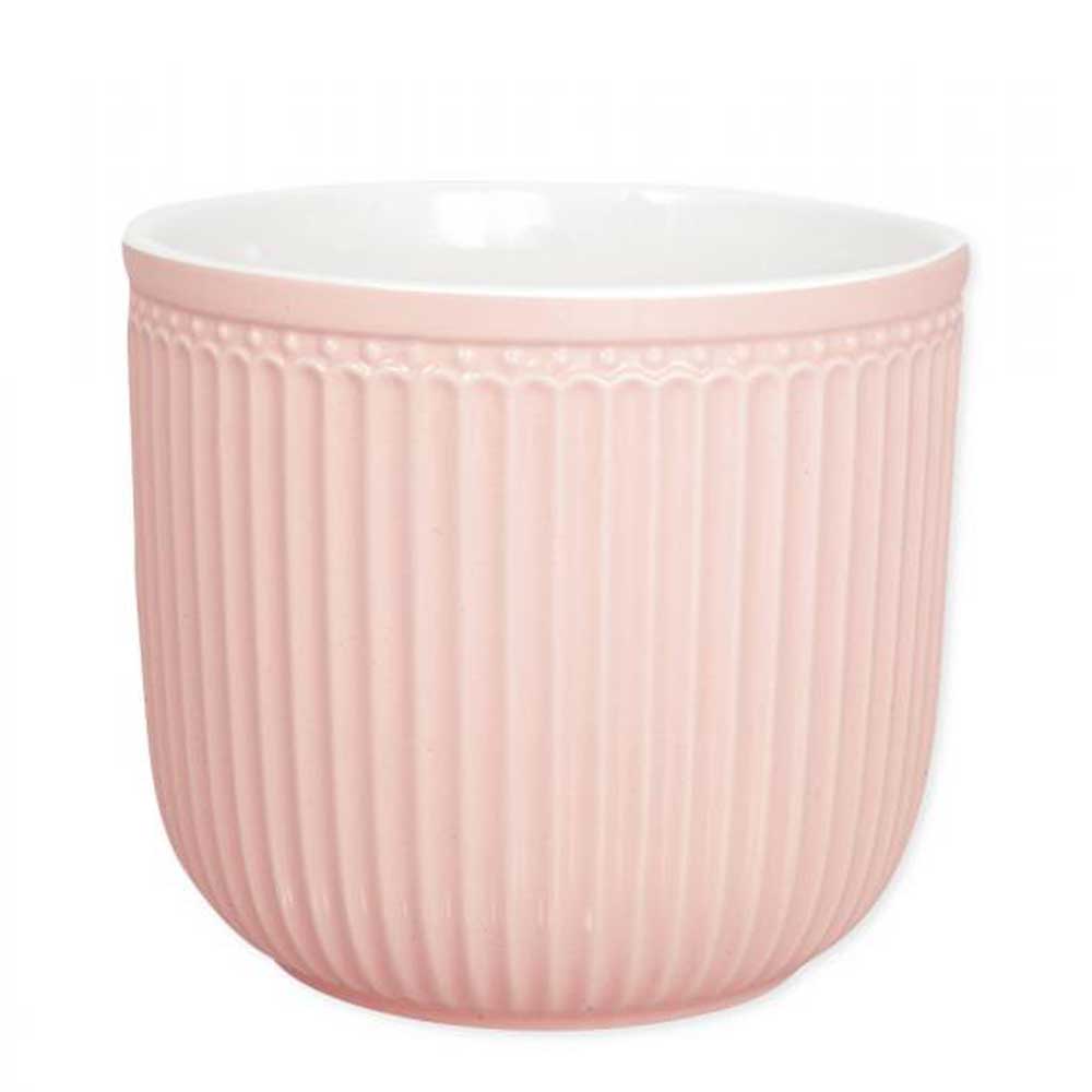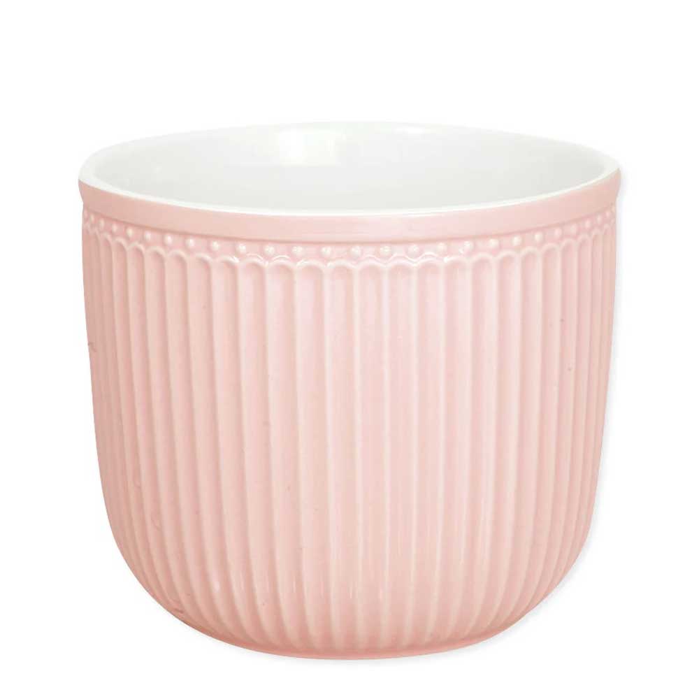 Mit seinem sanften Pastellrosa und der feinen Rillenstruktur versprüht der Alice Blumentopf pure skandinavische Leichtigkeit. Die dezente Farbgebung und der glatte weiße Innenbereich lassen Pflanzen zur Geltung kommen und sorgen für Harmonie in deinem Zuhause. Er besteht aus hochwertigem Steingut und ist in zwei praktischen Größen erhältlich – perfekt für Kräuter, Blühpflanzen oder als stilvolle Aufbewahrung.