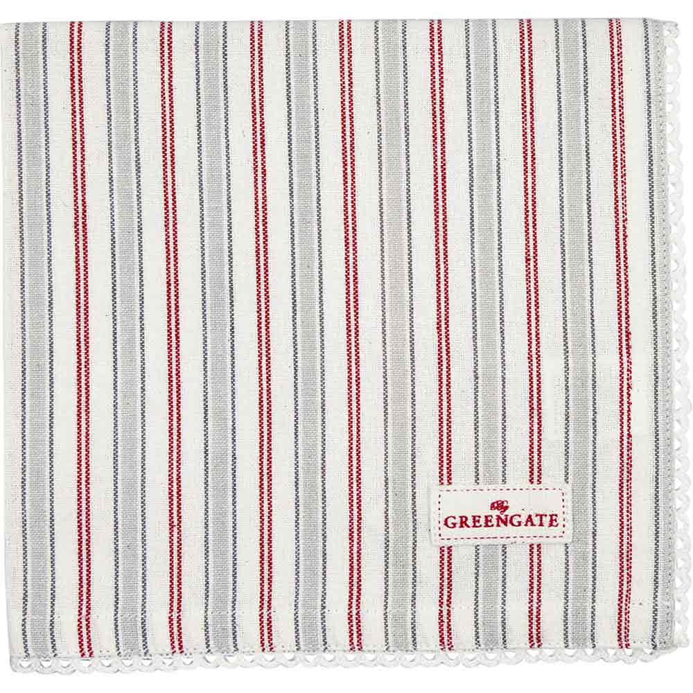 Diese Stoffserviette von GreenGate aus der Serie Cara bringt mit ihren feinen Längsstreifen in Rot und Grau skandinavische Leichtigkeit auf deinen Tisch. Die dezente Farbkombination auf reinem Weiß und die filigrane Spitzenkante machen sie zum perfekten Begleiter für gemütliche Mahlzeiten und besondere Anlässe.