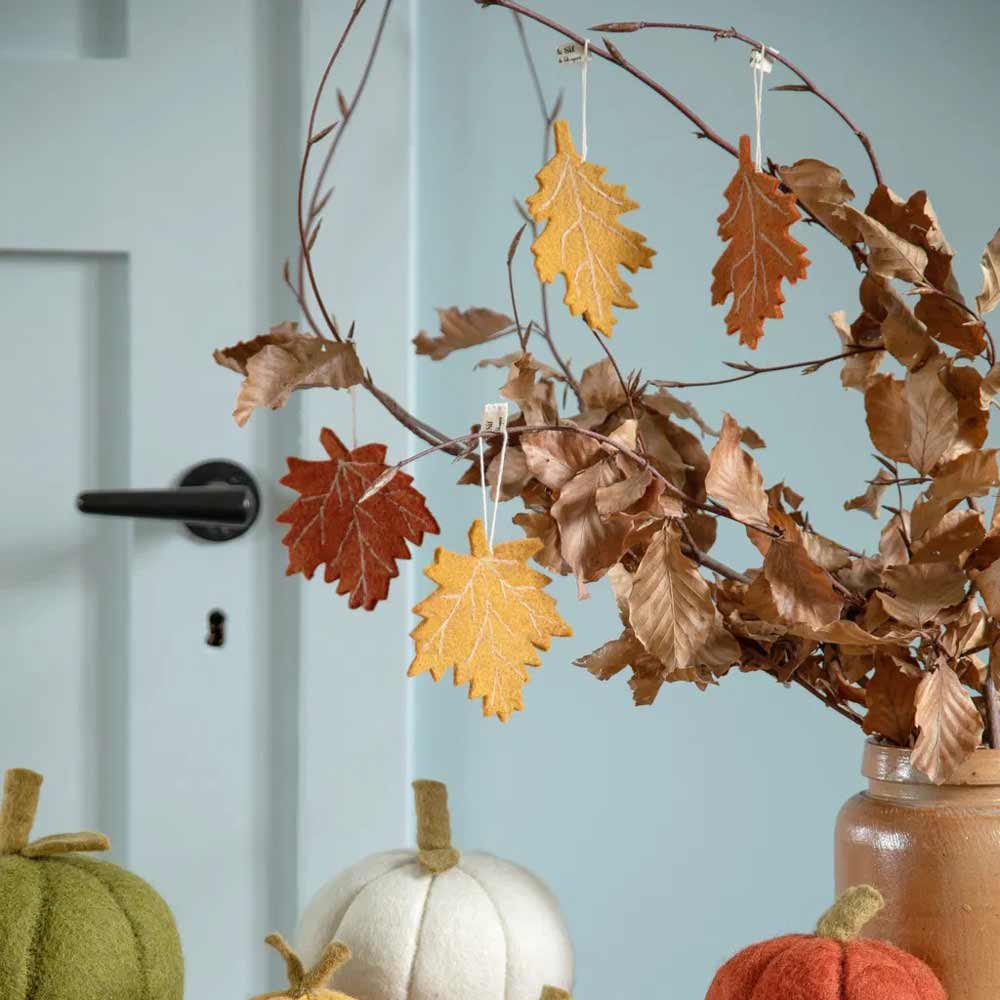 Hänge die Filzblätter an deinen Türkranz, schmücke damit Äste in einer Vase oder verwende sie als besonderen Baumschmuck – deiner Kreativität sind keine Grenzen gesetzt!