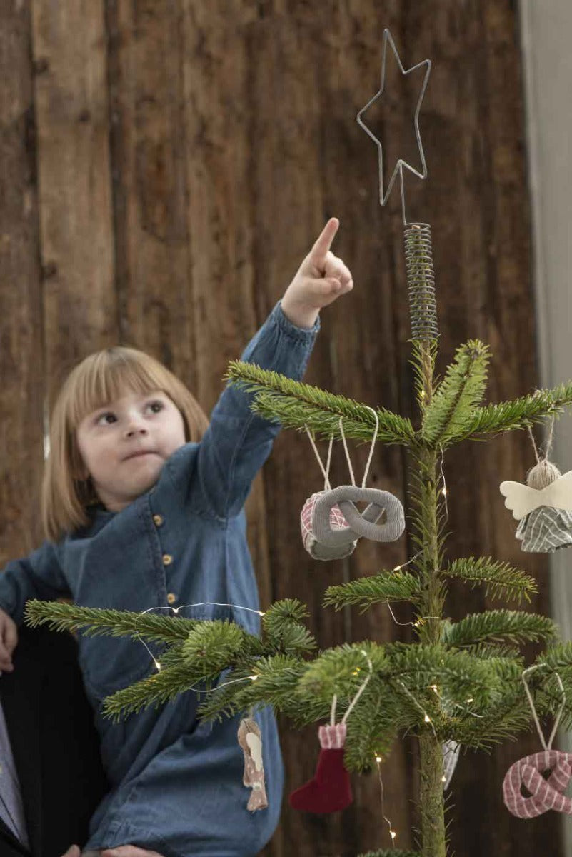Diese Ib Laursen Bretzelanhänger verströmen nostalgische Weihnachtsstimmung mit einem Augenzwinkern. Das 4er‑Set besteht aus liebevoll genähten Stoff-Brezeln, die an die Leckereien auf dem Weihnachtsmarkt erinnern. Jeder Anhänger hat seine eigene Farbvariante: warmes Braun, dezentes Grau sowie rot-weiße Streifen in zwei Ausführungen. Die weiche Stoffstruktur und die naturfarbene Aufhängeschlaufe verleihen jedem Stück einen gemütlichen, handgemachten Charakter.