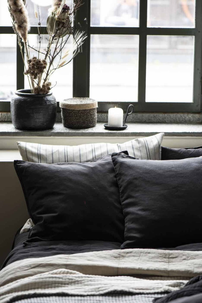 Hergestellt aus hochwertiger Baumwolle überzeugt der Bezug durch seine weiche Haptik und robuste Qualität. Eine Seite besticht durch die feinen blau eingewobenen Streifen, die andere zeigt sich unifarben dunkelblau – so kannst du im Handumdrehen für Abwechslung sorgen. Ein versteckter Reißverschluss erleichtert das Beziehen und verleiht dem Kissen einen sauberen Look. Kombiniert mit anderen Textilien aus der Kollektion entsteht ein harmonisches Gesamtbild, das skandinavische Lässigkeit ausstrahlt.
