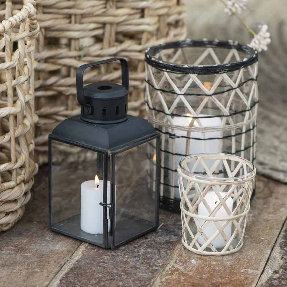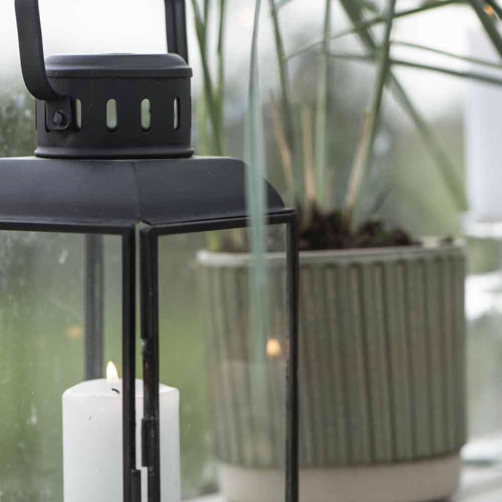 Kombiniere die Laterne mit einer Stumpenkerze in warmen Farben oder befülle sie saisonal mit Tannenzapfen, kleinen Lichterketten oder Blüten – so wird sie zum ganzjährigen Blickfang.