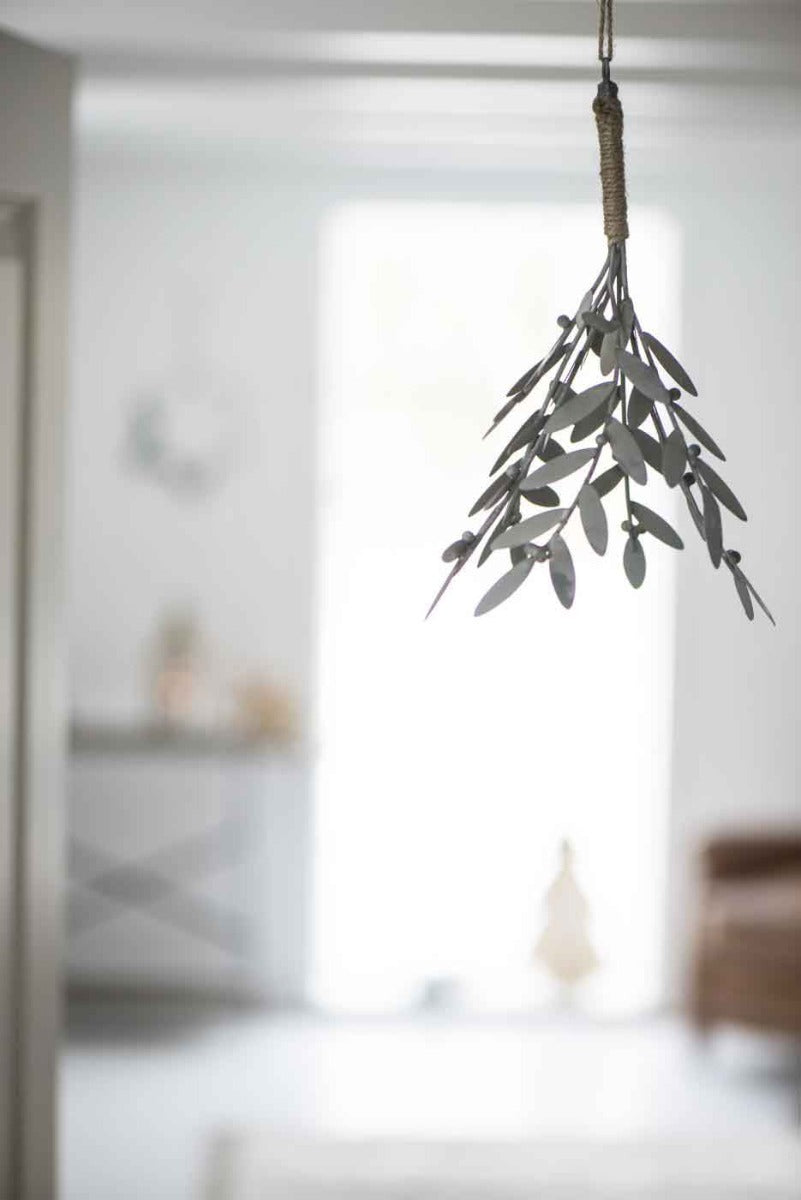 Der Mistelzweig zum Hängen von Ib Laursen bringt romantische Festtagsstimmung zu dir nach Hause. Seine filigranen Blättchen und kleinen Beeren aus Zink wirken wie echtes Mistelgrün, bleiben jedoch dauerhaft schön – ganz ohne Nadeln oder welkes Laub. Einfach aufhängen und schon verleihst du deinem Zuhause eine Portion nordische Magie ♥.