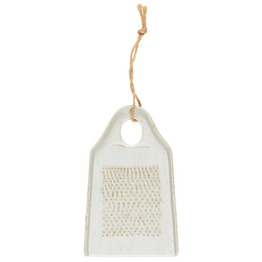 Diese Reibe überzeugt durch ihre handgefertigte Optik mit gesprenkelter Oberfläche, die einen Hauch von Eleganz ausstrahlt. Die strukturierte Reibefläche sorgt für präzises Arbeiten, während die erhöhten Kanten das Abrutschen von Lebensmitteln verhindern. Praktisch: Der Handgriff mit Jutekordel macht das Aufhängen ganz einfach.