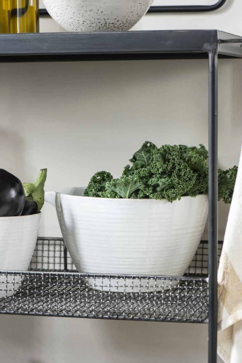 Die hochwertige Steinzeug‑Qualität sorgt für Robustheit und verleiht der Schale eine angenehme Schwere. Ihre zeitlose Farbe harmoniert mit Landhaus- und Skandi‑Küchen, während die sanften Rillen für einen sicheren Griff sorgen. Die Tülle ist nicht nur ein ästhetisches Detail, sondern praktisch beim Backen und Servieren. Ob als dekorative Obstschale oder als Servierschüssel für Salate – dieses vielseitige Stück begleitet dich durch viele Genussmomente.