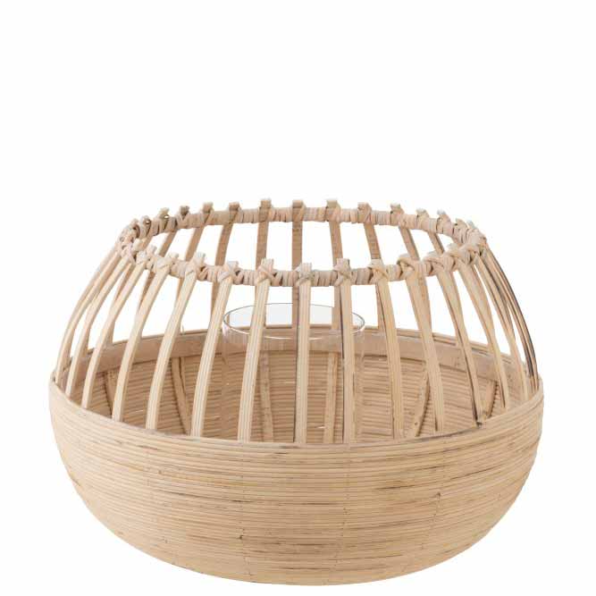 Die Mega‑Laterne besteht aus naturbelassenem Bambus, der zu einem großzügigen Rahmen geflochten wurde. Mit einem Durchmesser von 42 cm und einer Höhe von 27,5 cm bietet sie Platz für größere Kerzen oder LED‑Lichterketten. Das natürliche Material sorgt für ein rustikales, zugleich sehr elegantes Erscheinungsbild und passt zu vielen Wohnstilen, von Boho bis Landhaus.